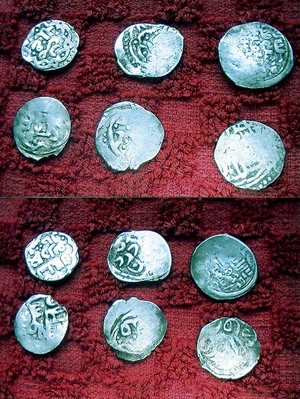 QUOTE(grenader @ Dec 12 2010, 23:08) 15в. сделайте пожалуйста фоты покрупнее, если можно не всей кучей, а по 1-2 монеты С ув. Вот четыре штуки с этого клада.Могу сделать сканы всех монет. |