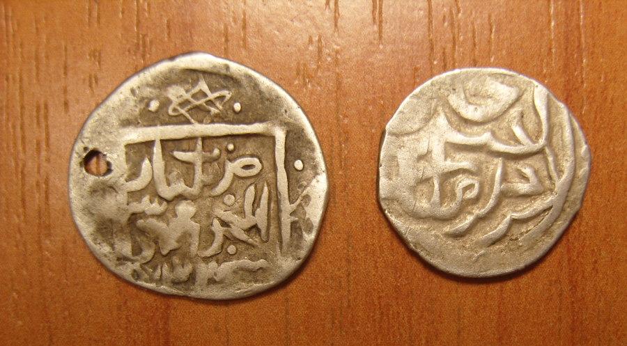 QUOTE(razin @ Oct 2 2016, 08:39) 1. Абдаллах, Орду 770 г.х. 2. Монета опубликована: Фомин А.В. Донской клад джучидских монет начала XV в.//Нумизматический сборник ГИМ. Том XIX. М.,2012. №193 и отнесена автором к джучидским монетам нерегулярного чекана или подражательным. Описана так: без обозначения места и года чекана, Л.с.- остатки имени Токтамыша, Об.с.- Символ веры, и какое-то слово по-монгольски (Токтамыш?). |