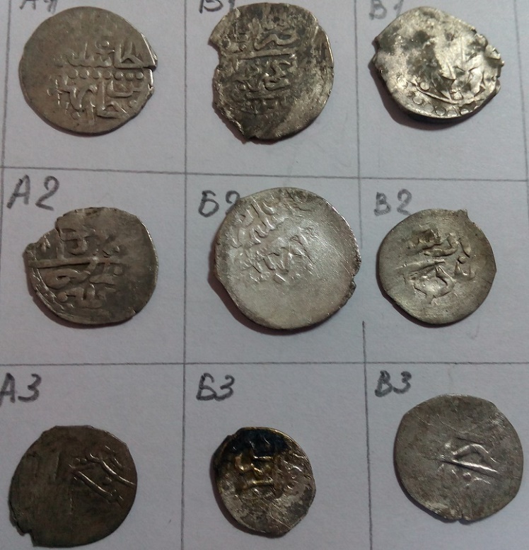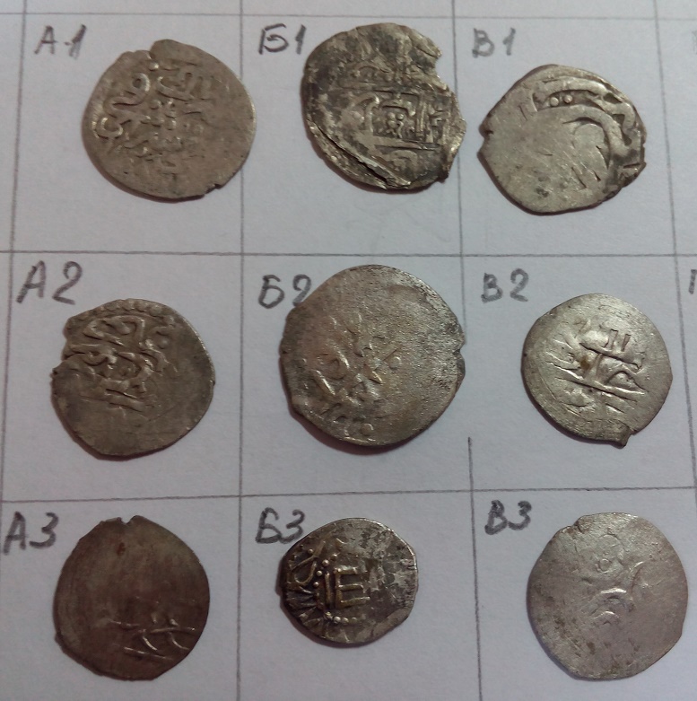 QUOTE(R.A.V. @ Nov 14 2016, 09:54) По моим монеткам подскажите, плиз.... 1. Токтамыш, Крым 796 г.х. 2. Токтамыш, Орду ал-Муаззам тип 789 г.х. 3. Тимур-Кутлуг с калимой. 4. Пулад с калимой. До 5/ок. 5 у.е. каждая. |