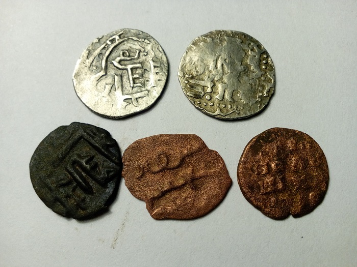 QUOTE(konkord @ Nov 27 2016, 12:46) Доброго дня. Прошу определить и оценить данные монеты. Заранее благодарю. 1. Джанибек, Сарай ал-Джедид тип 751 г.х. До 5 у.е. 2. Анонимный дирхем времени Тула-Буги (686-689/1287-1291), Сарай 688 г.х. Возможно от 5 у.е. 3. Пул чекана Мохши 733 ? г.х. 4. Пул с легендой уйгурским письмом. Ю.Е. Пырсов прочитал там "Аймаг Укек"= Область Укек и "Каан-ун/эшээн"=Ставка хана. Чеканен не ранее начала XIV в. 5. Русский медяк времени Петра I. |