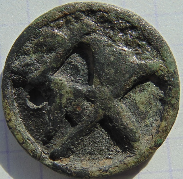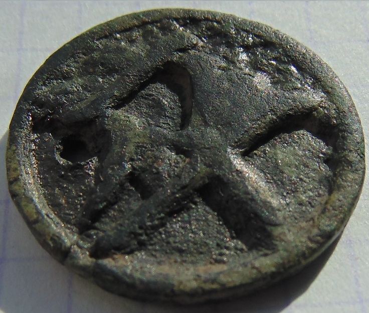 Прошу помощи в определении и оценке. Особенно интересует можно ли определить останки какой монеты в центре? ![]() ![]() Прошу прощения, при загрузке изображения повернулись на 90° -------------------- И все-таки тюркский!)