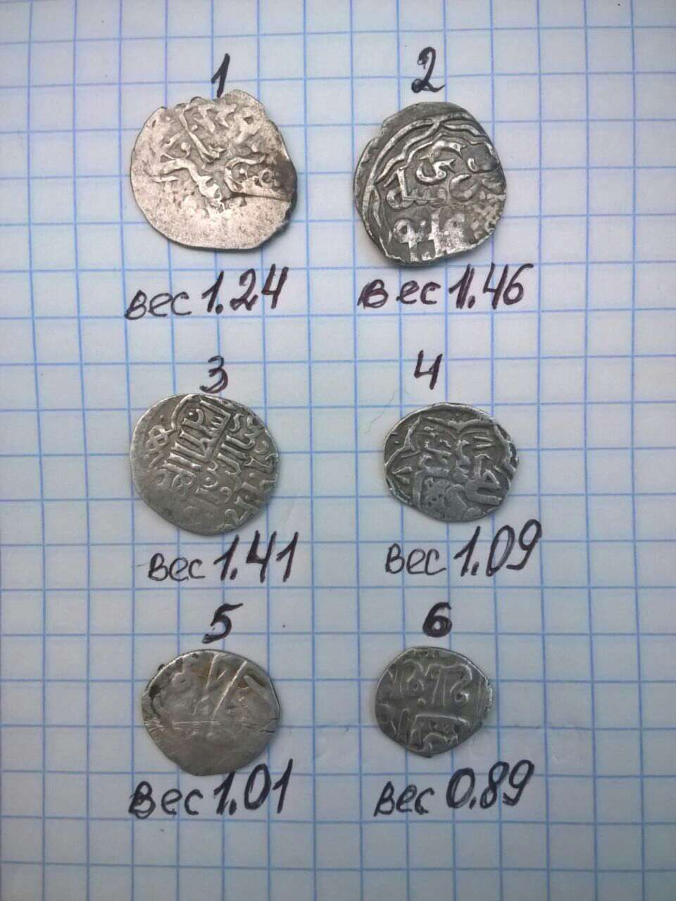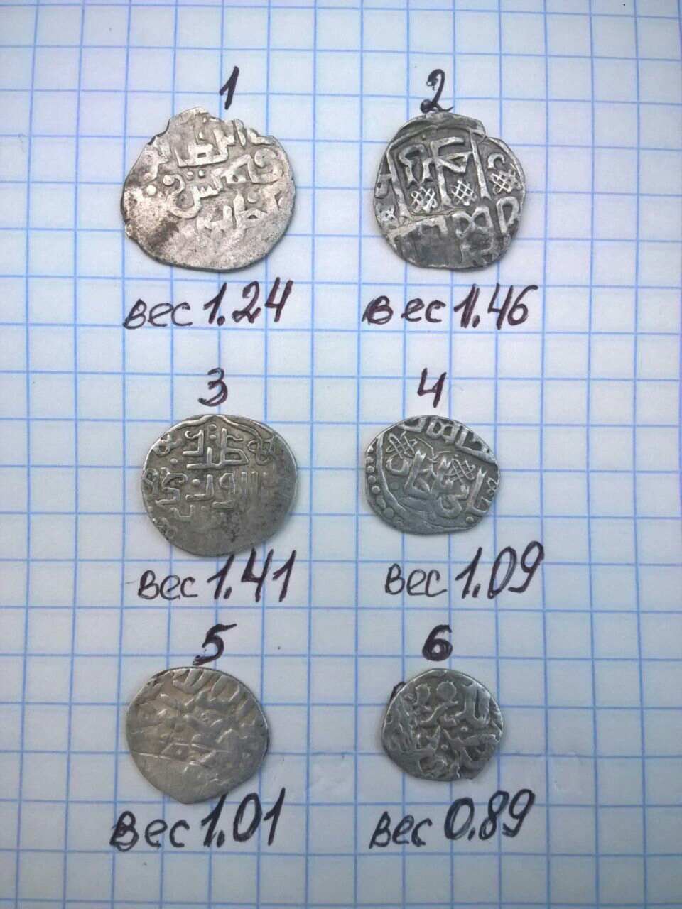 QUOTE(utrewa @ Jun 21 2017, 22:57) Здравствуйте. Помогите пожалуйста с оценкой и определением данных монет. (весы китайские) 1) Токтамыш, предположительно Сарай ал-Джедид 2) Джанибек, Сарай ал-Джедид, 747 г.х. 3) Мухаммед, ал-Орду 4) Джанибек, Сарай ал-Джедид, 748 г.х. 5) Токтамыш, Калима, 794 г.х. 6) Джанибек, Сарай ал-Джедид 4,5,6-обрезаны до 5 у.е. Остальные тоже близко к этой цене. |