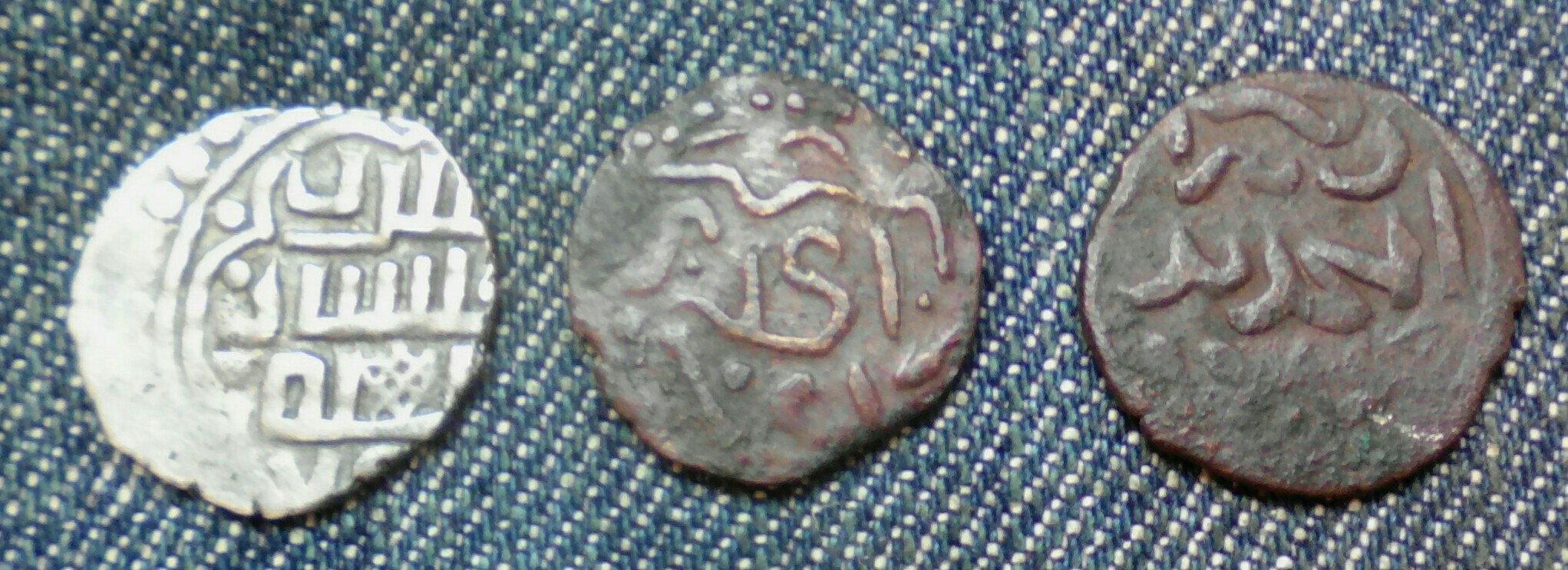 Уважаемые форумчане,прошу помощи в определении монет.серебро первая и медные вторая и третья.размер 10-14 мм.вес не скажу,к сожалению.заранее благодарен.