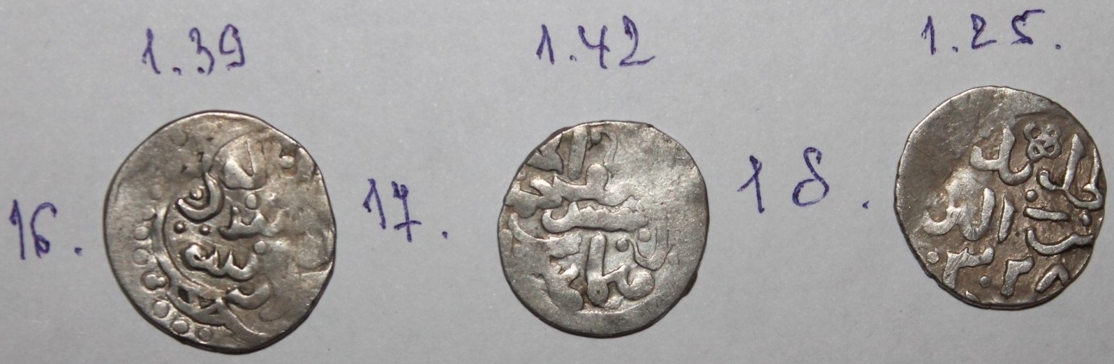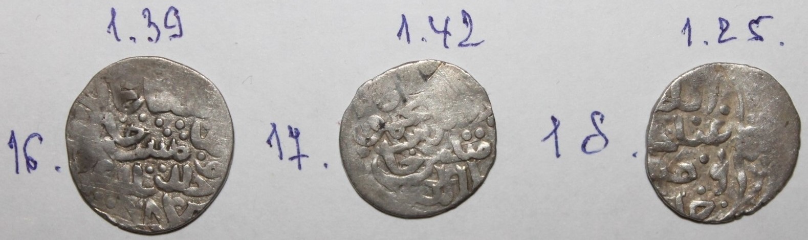 QUOTE(viktor.s @ Aug 9 2017, 11:42) Прошу определить и оценить монету. Вес 1,54г. Махмуд Джанибек, чекан Сарая ал-Джадиды, 753 г.х. До 5 у.е. -------------------- Прошу высылать на e-mail фото дангов АБДАЛЛАХА и МУХАММЕДА (+вес)