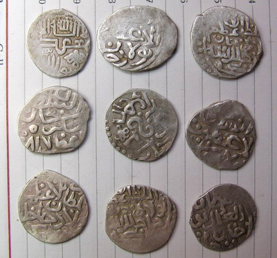 QUOTE(ansi @ May 3 2011, 22:35) пожалуйста! нужна, так сказать, оперативная информация, хотя бы грубо даты монет, насколько понимаю дирхемы? подражаний нет? извините что повернуто а бы как, не у всех понимаю где верх где низ... 1. Шадибек,м.д. Орда, дата не вошла 2. Пулад Сарай Новый 811 год, дата не вошла 3. Пулад м.д. Орда, 812 год, от даты только 2 4. неведома зверюшка, думаю Чокре, м.д. Хаджи Тархан 817 год, 5. подражание 6. = 2, такого штемпеля не припомню, даты нет 7. Пулад хан, Хаджи Тархан, тип без даты 8. = 3 9. хана не могу прочитать, м.д. Хаджи Тархан |