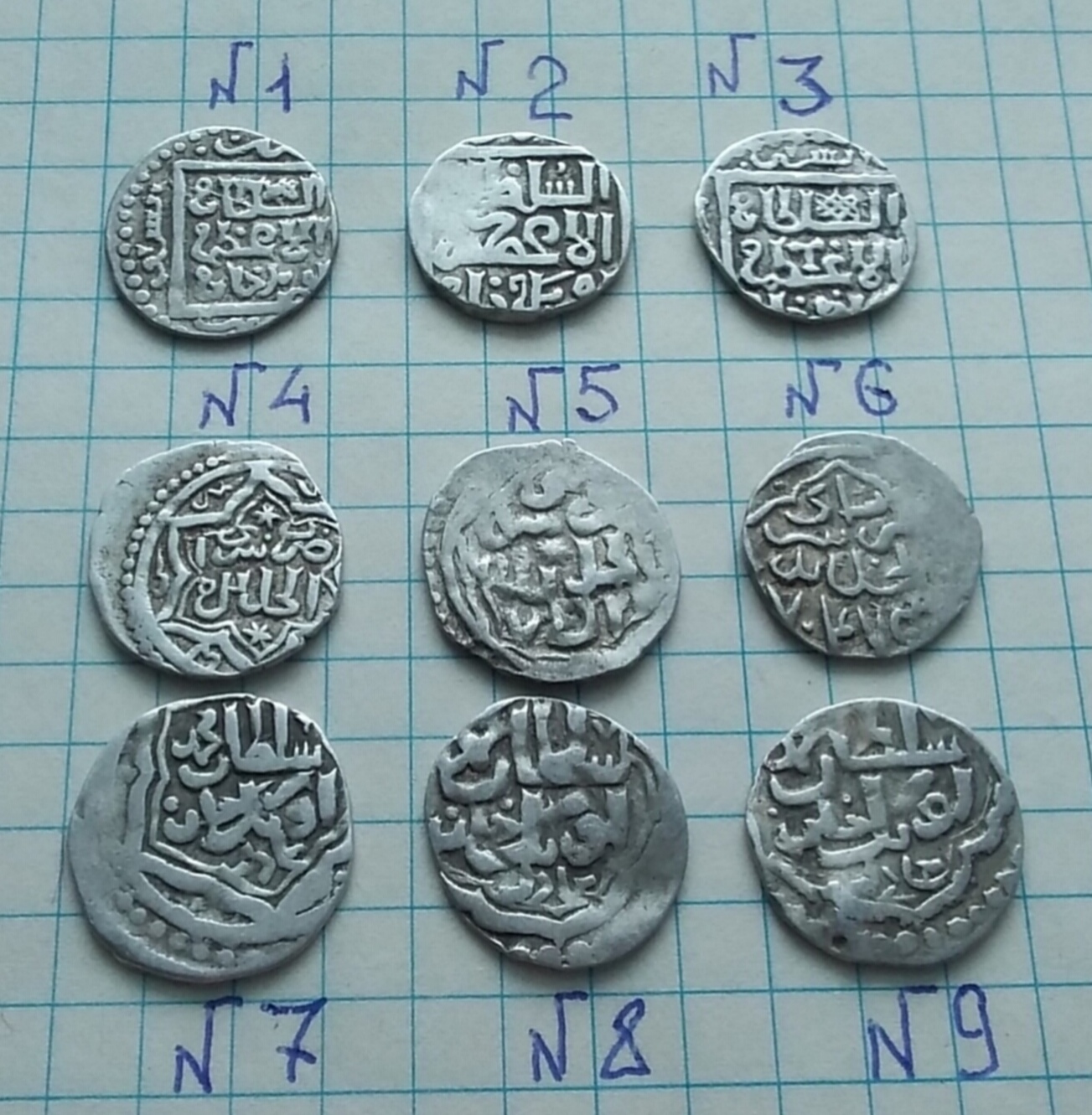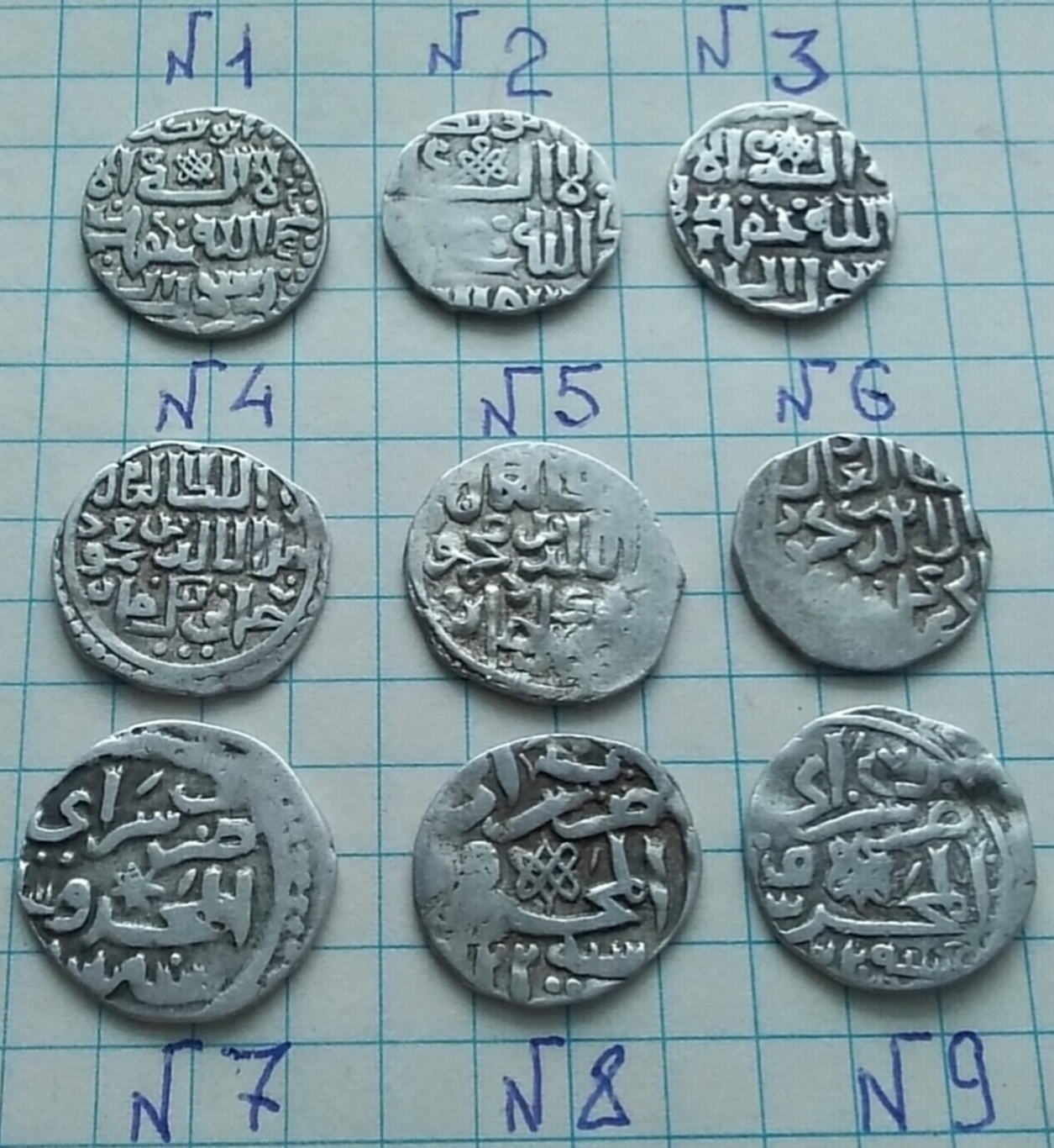 QUOTE(Абстрагирующий @ Dec 5 2017, 19:32) Всем- Доброго времени! Продолжу просить помощи у специалистов в определении и оценки монет Золотой Орды. Всем- огромная благодарность за помощь! 1-1,52 гр. 2-1,56 гр. 3-1,41 гр. 4-1,45 гр. 5-1,50 гр. 6-1,48 гр. 7-1,50 гр. 8-1,33 гр. 9-1,45 гр. Фото 1: 1 - 3. Узбек, Сарай тип 734 и 737 гг. х. 4. Джанибек, Сарай ал-Джедид 746 г. х. 5. То же, Гюлистан 752 г. х. 6. То же, Сарай ал-Джедид 747 г. х. 7 - 9. Узбек, Сарай ал-Махруса 722 г. х. Ок. 5/от 5 у. е. каждая. |