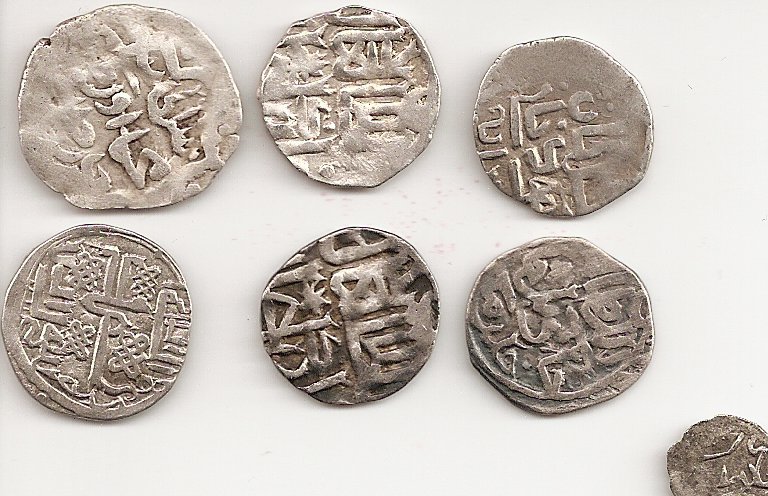 (Прошу прощения, ориентировал их неверно) 1. Думаю, что это Токта, но точно такого же у Сагдеевой не нашел. 2. Вроде бы Джанибек № 207, но лс немного отличается. 3. Не знаю. 4. Вроде бы Узбек № 202... На самом деле - нет. 5. = 2 6. Не знаю. Вложенные эскизы изображений |