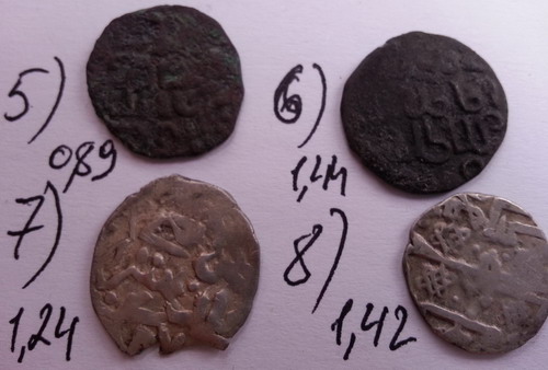 QUOTE(ДРЁМ @ Jan 14 2018, 17:35) 1. Кулпа, Сарай ал-Джедид. До 5 у. е. 2. Подражание дангу. До 5/ок. 5 у. е. 3. Подражание дангу. От 10 у. е. 4 и 5. Русские подражания. От 5 у. е. каждое. 6. Тимур Кутлуг, Орду Сэтудан? От 5 у. е. 7. Токтамыш, белед Азак 782 г. х. До 5 у. е. |