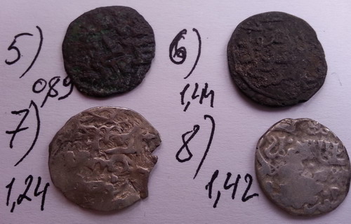 QUOTE(Кабул-Шах @ Jan 14 2018, 18:22) 1. Кулпа, Сарай ал-Джедид. До 5 у. е. 2. Подражание дангу. До 5/ок. 5 у. е. 3. Подражание дангу. От 10 у. е. 4 и 5. Русские подражания. От 5 у. е. каждое. 6. Тимур Кутлуг, Орду Сэтудан? От 5 у. е. 7. Токтамыш, белед Азак 782 г. х. До 5 у. е. Благодарю ! -------------------- ничто не бывает утеряно окончательно, просто оно лежит не на своём месте...[COLOR=gray][FONT=Geneva]