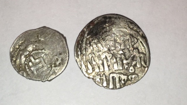Здравствуйте, разбирая находки попалась вот такая монетка, по виду и размеру очень похоже на бывший дирхем, только не понятно что с ним случилось, у кого нибудь что то похожее попадалось?