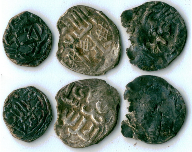 Уважаемые коллеги, извиняюсь за повтор, решил разбить фотографию на отдельные монеты. Помогите с опознанием дирхемов? Все что можно перерыл, но ничего не соображаю в них. По второй и третей монете можно попробовать что то рассмотреть, но только не при таком качестве изображения. -------------------- Читаю куфические дирхемы и не только...