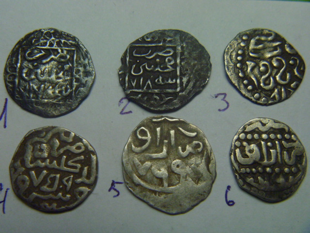 QUOTE(rioart @ May 28 2011, 09:27) Здравствуйте.Помогите пожалуйста определить монеты.С уважением. 1) Узбек-хан, чекан Мохши, 717 г.х.. 2) Узбек-хан, чекна Мохши, 718 г.х.. 3) Пулад-хан, чекан Хорезма, 810 г.х.. 4) Бердибек-хан, чекан Гюлистана, 759 г.х.. 5) Абдаллах-хан, чекан Азака, 764 г.х.. 6) Бердибек-хан, чекан Азака, (759 ?-760 ? г.х.). |