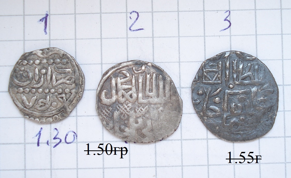 QUOTE(genaikaNN @ May 5 2018, 11:52) Уважаемые специалисты...помогите определить и оценить монеты.. 1)Бердибек, Азак, 759 г.х 2)Джанибек,Сарай ал-Джедид, 748г.х 3)Джанибек,Сарай ал-Джедид, 753 г.х Около 5 у.е за штуку. -------------------- Всё хорошо,будет ещё лучше!