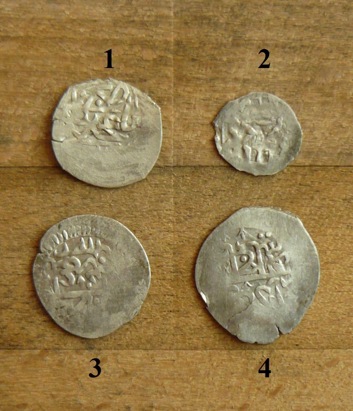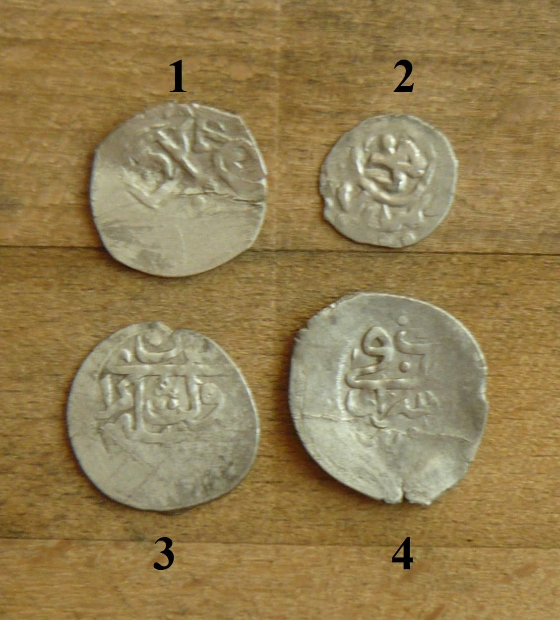 QUOTE(Sambuca @ Aug 7 2018, 17:50) Здравствуйте, Уважаемые! Прошу Вашей помощи в атрибутации и оценке 4-х монет! Спасибо за помощь Все монеты - дирхемы золотоордынского хана Токты (689-712 гг. х./1290-1312 гг.) чеканки Сарая. 1. 69(1-3) г. х. 2. года не видно. 3 и 4. 693 г. х. Лучшая монета №3 от 500 р., остальные в слабом качестве, поэтому выставлять эти 4 монеты лучше одним лотом. |