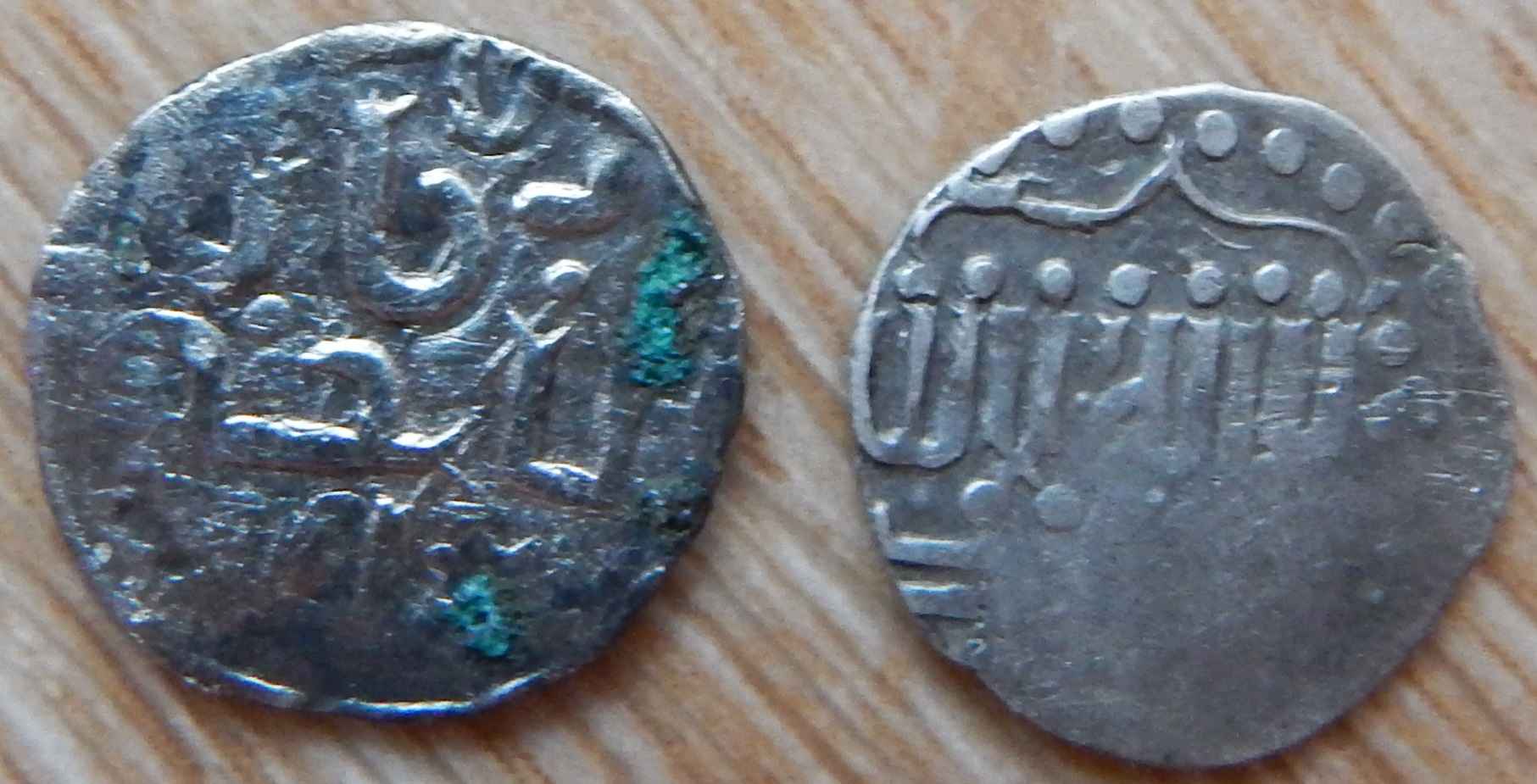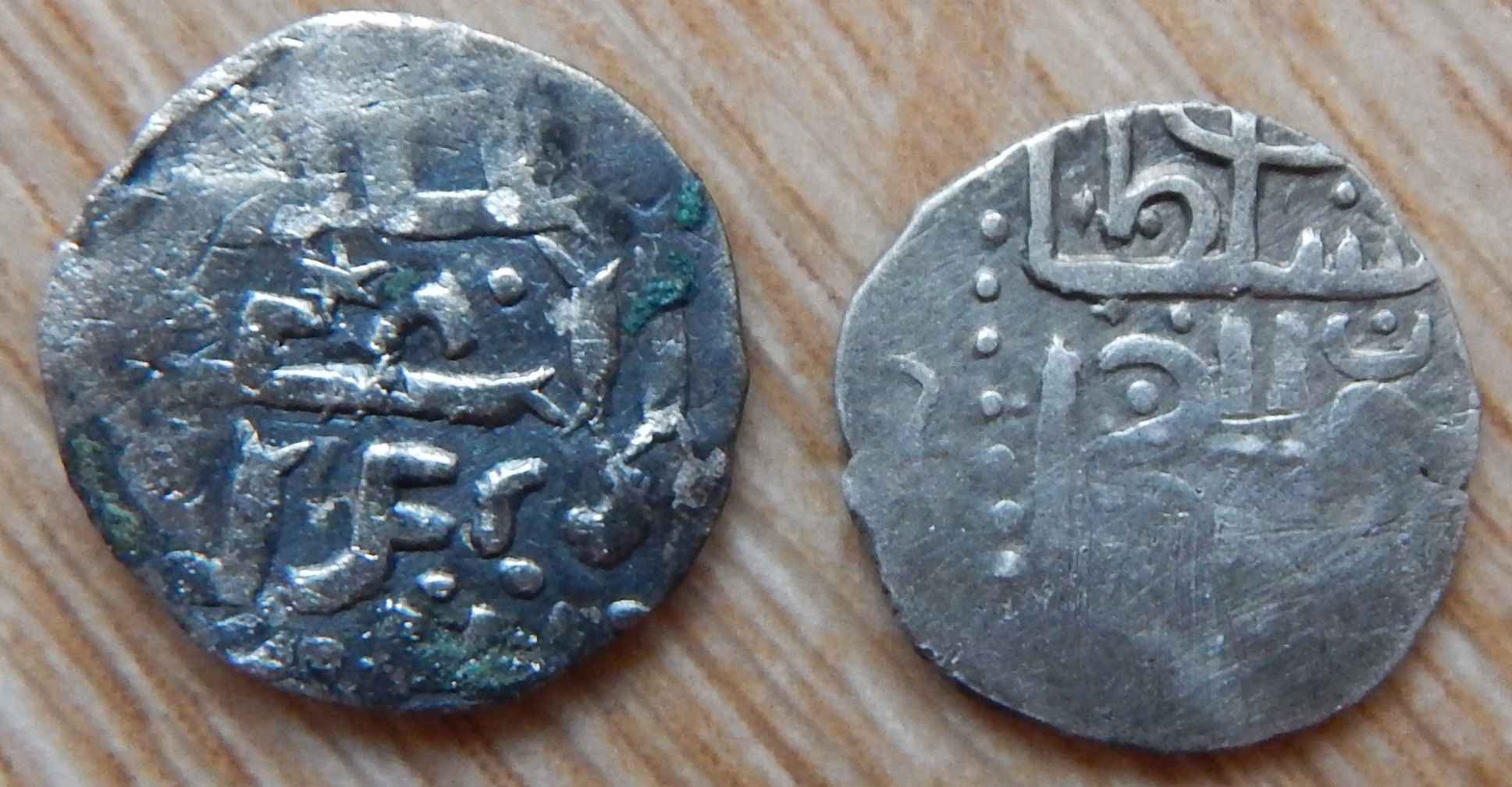 QUOTE(viktor.s @ Nov 17 2018, 08:45) Всех приветствую! Прошу определить и оценить монеты. Вес 1,21г и 1,02г 1. Подражание дангу хана Узбека. От 300 р. 2. Джучиды, Пулад хан, данг с калимой. 150-200 р. |