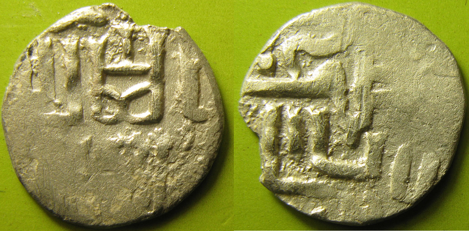 QUOTE(zzzzzzzz @ Nov 30 2018, 22:37) Здравствуйте. Возможно ли определить монетку в таком печальном состоянии? Вес 0.83 г. Диам ~(14-15) мм. Подражание дангу. Левая сторона - под Джанибека, как вариант. Правая - калима Узбека, как вариант. -------------------- Специализация: джучидские данги от Тюляка до Ибака.