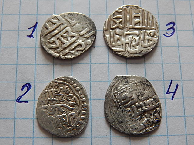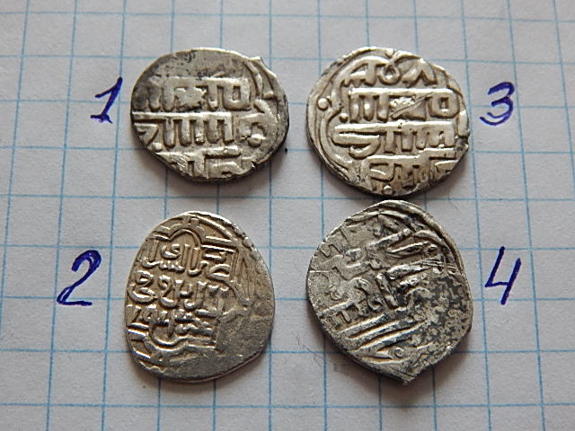 1,2 - куски дирхема Саманидов, 3,4 - Бухара, таньга.