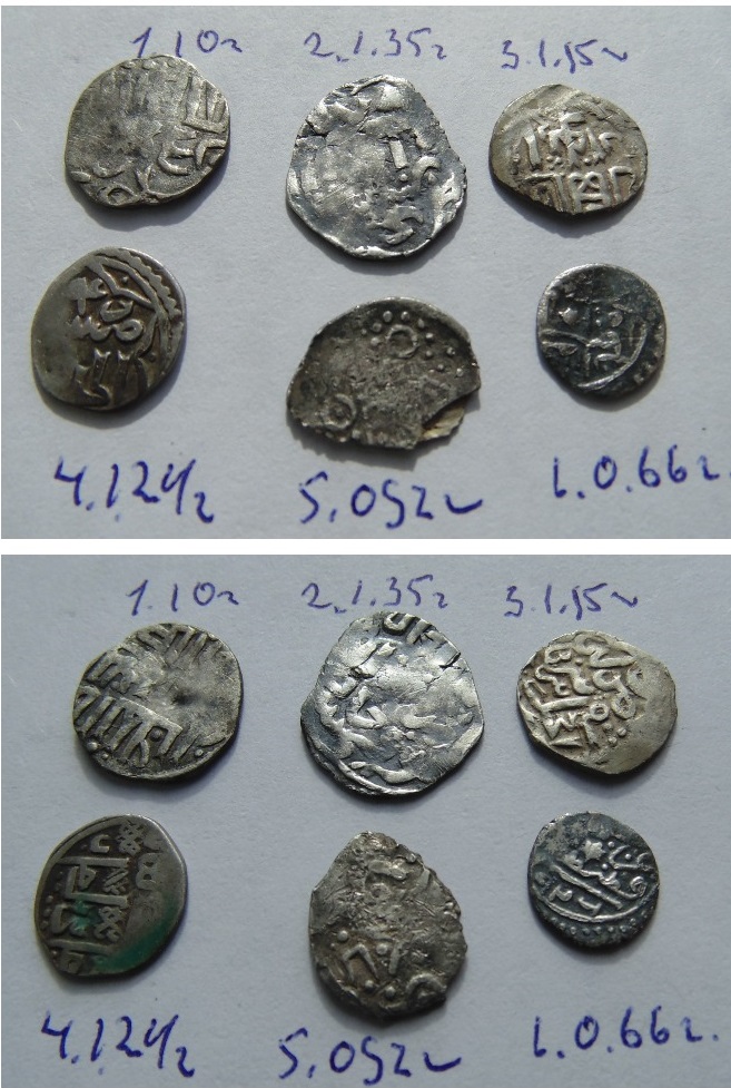 QUOTE(Джимми Гокинс @ Apr 2 2019, 23:42) Доброго вечерочка, расшифруйте монетки, будьте добреньки. Очень интересует именно год. 15 монет с пяточка и крест престол уготованный 15 века. ![]() ![]() 1. Токтамыш, Крым, 796 г.х. 2. Пулад, чекан СаДа (810?г.х.) 3. не разобрать 4. Пулад хан, чекан Орду. 5. Шадибек, Каффа Джадида. Оценивать по таким фото воздержусь. |
