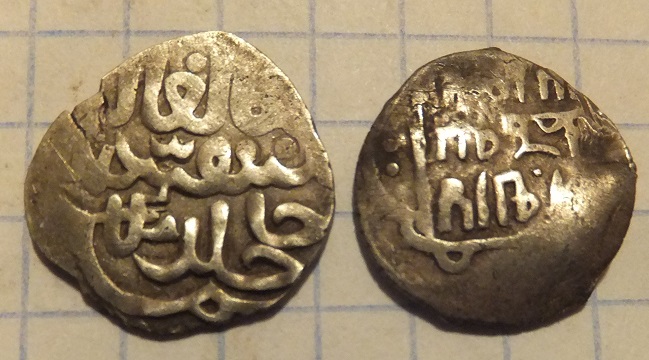 QUOTE(zemelia @ Nov 9 2019, 22:09) напомню по своим монетам с уважением. Джучиды, Токтамыш хан. 1. Сарай ал-Джедид 785 г. х., данг. 2. данг с калимой без двора и года. |