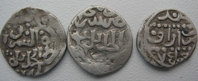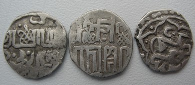 QUOTE(кудесник @ Sep 11 2011, 16:30) Уважаемые колеги, прошу помощи в определении 3х дирхемов. За пять лет поисков, в первый раз попались под катушку. Найдены на юго-востоке Оловской обл. Заранее спосибо. №1. Джанибек-хан, чекан Сарая ал-Джадид, 745 г.х. (= 1345 г.). №2. Джанибек-хан, чекан Сарая ал-Джадид, 747 г.х. (= 1347 г.). №3. Бердибек-хан, чекан Азака, 759 г.х. (= 1359 г.). |