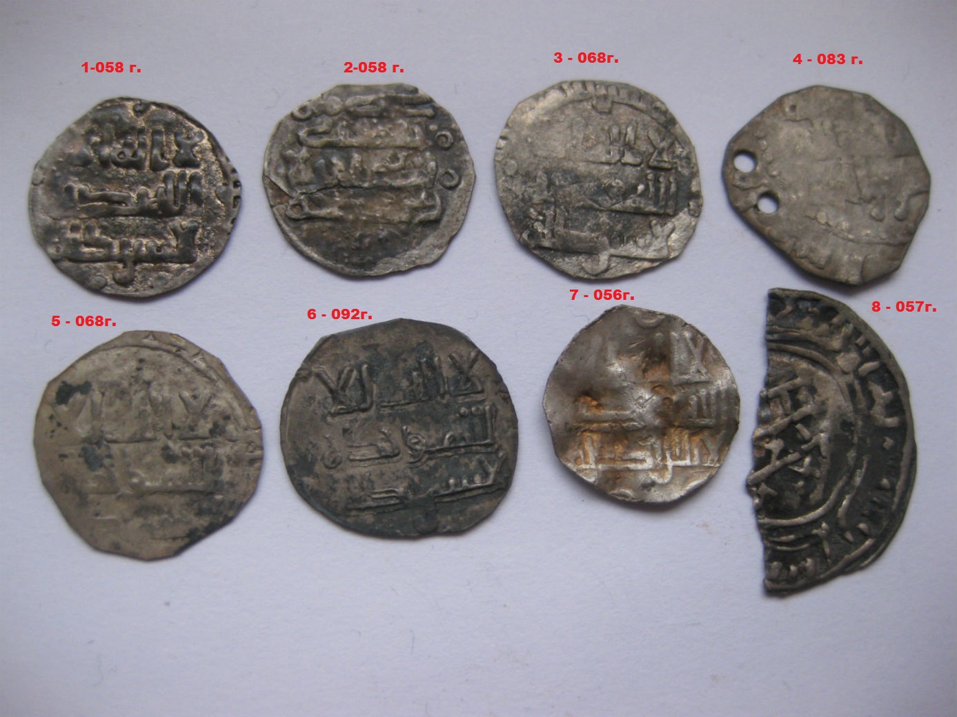 QUOTE(ТЕРМЕЗ-ТЕРМЕЗ @ Jan 19 2020, 12:59) Добрый день! Спасибо vbt за определение!!! Подскажите пожалуйста по этим монетам и примерную цену. Спасибо. 1 - данг ЗО, точнее специалисты подскажут 2-6 - подражания куфическим дирхемам 7, 8 - краевые вырезки из куфических монет |