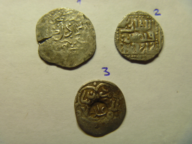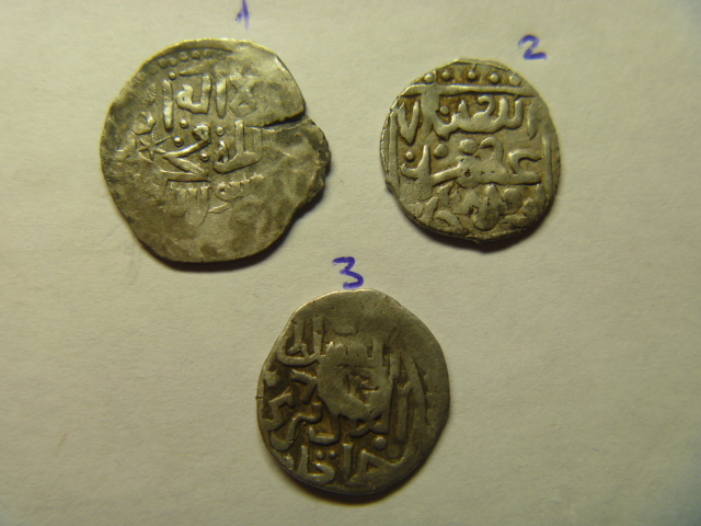 2. Шадибек 80(7) чекан Кафы Новой - мало стоит 3. Узбек 71х чекан Сарая, обрезан - мало стоит 4. незнаю, чекан Орды по куфике не скажу |