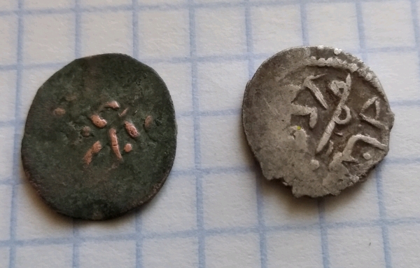 QUOTE(капран @ Mar 10 2020, 23:49) Всем здравствуйте. Определите пожалуйста монеты. Оценка тоже очень важна +, - . С ув. капран 1. Данг Джанибека, СаДа, 747 г.х., обрезан, до 5 уе. 2. Данг Мухаммада, Орду, как рассмотрел. До 5 тоже, наверное. 3 и 4 - подражания. Ок. 5 и от 5. Оценка приблизительна из-за слабых фото. -------------------- Специализация: джучидские данги от Тюляка до Ибака.