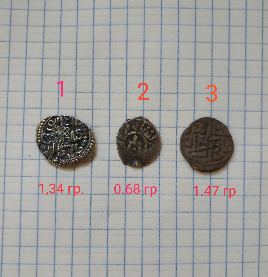 QUOTE(Werta @ May 19 2020, 20:35) Здравствуйте. Подскажите по монетам....вес на фото, клеточка 0,5 см. Спасибо. 1. Русская монета с именем Токтамыша. -------------------- Специализация: джучидские данги от Тюляка до Ибака.