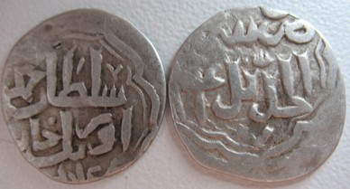 QUOTE(кудесник @ Oct 10 2011, 12:24) Вопрос к спецам, , определите пожайлуста монеты. Заранее спосибо ну и цену ,примерную. 1 и 4) Джанибек-хан, чекан Сарая ал-Джадид, 747 г.х. (= 1347 г.). 2) Джанибек-хан, чекан Сарая ал-Джадид, 7(45) г.х. (= 1345 г.). 3) Узбек-хан, чекан Сарая, 722 г.х. (= 1322 г.). |
