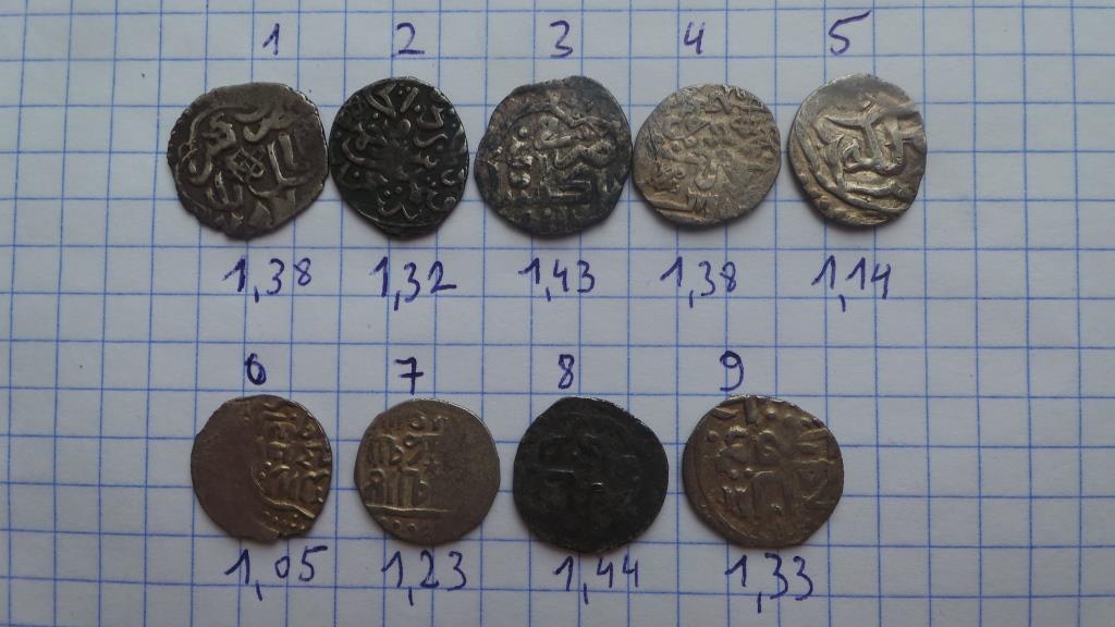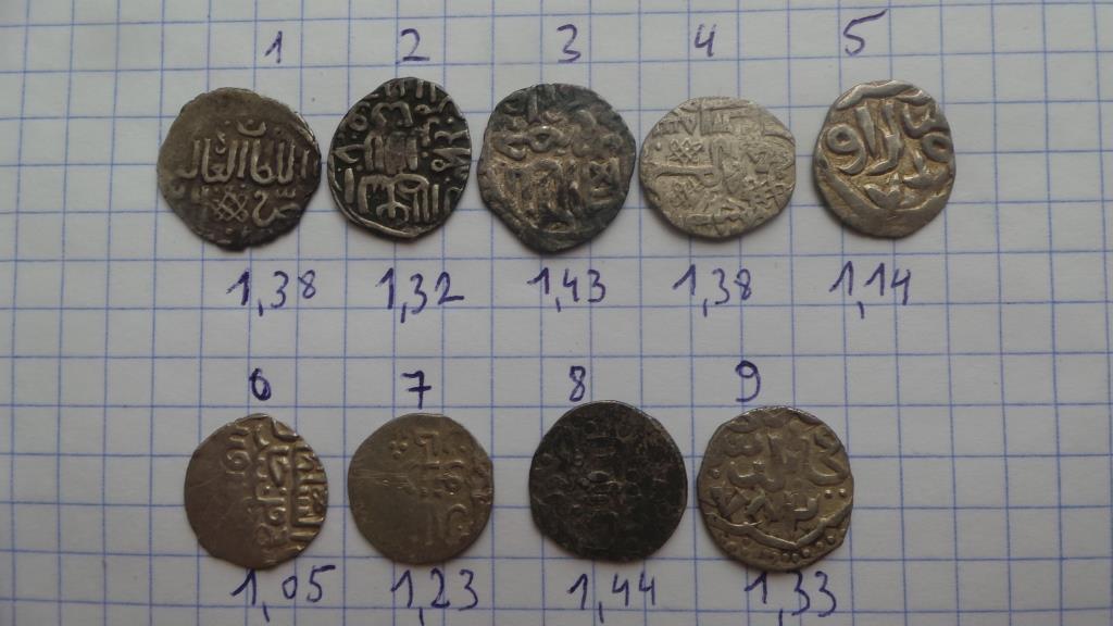QUOTE(BenLaden @ Jan 25 2021, 21:35) Всем привет, помогите с определением, и сориентируйте по цене. Заранее спасибо. 1. Токтамыш Белед Сарай 782 гх. 2. Токтамыш Орду аль Джадид 785 гх. 3. Хызр Гюлистан 761 гх. 4. Узбек Сарай 739-741 гх. двойной удар. 5. Абдаллах Азак 764 гх. 6. Токтамыш…. Кажется Крым с калимой… Фотка плохая и не все изображение вошло…. 7. Калима…. Но кто, сомневюся я…, Судя по весу Токтамыш Крым. Выложите, плиз отдельным фото. 8. Какой то черный кружок… Можно фото получше? 9. Токтамыш белед Сарай 782 гх. В районе 300-500 каждая. +\- Сообщение отредактировано Разбой: Jan 25 2021, 22:14 -------------------- СаД - Сарай аль Джадид