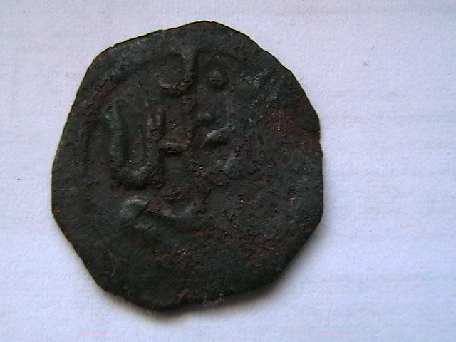 Помогите пожалуйста с опознанием монеты. Вес 1,5 гр, есть остатки серебрения, размер 19*15 мм. Найдена Крым, Белогорский р-н.