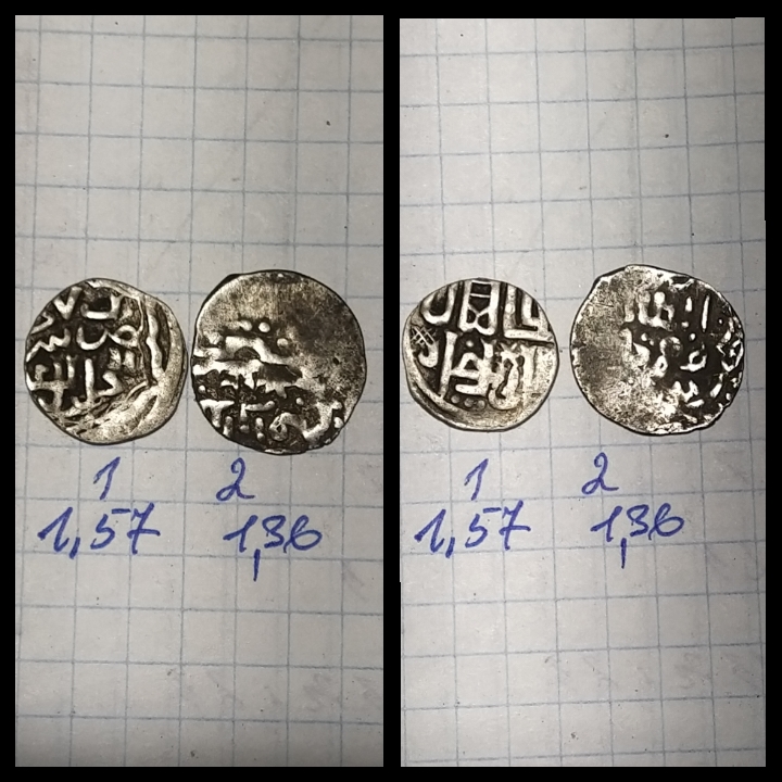 QUOTE(Скворцов @ Apr 1 2022, 20:24) Слева и справа (с дырой) - подражания. В центре - похоже на данг Джанибека, Гюлистан, 754 г.х. - какой вес монеты? Вес монеты по середине 1,49. Слева дыры нет. |