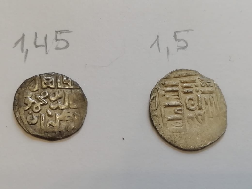 QUOTE(Сантьяга @ May 19 2022, 10:51) Здравия всем! Прошу определить монеты. Опять Узбек попался или что другое... Место находки Саратовская область. 1 Джанибек СаД. ПОхоже вариант без даты 2 Узбек Сарай тип 714 - 718 гх -------------------- СаД - Сарай аль Джадид