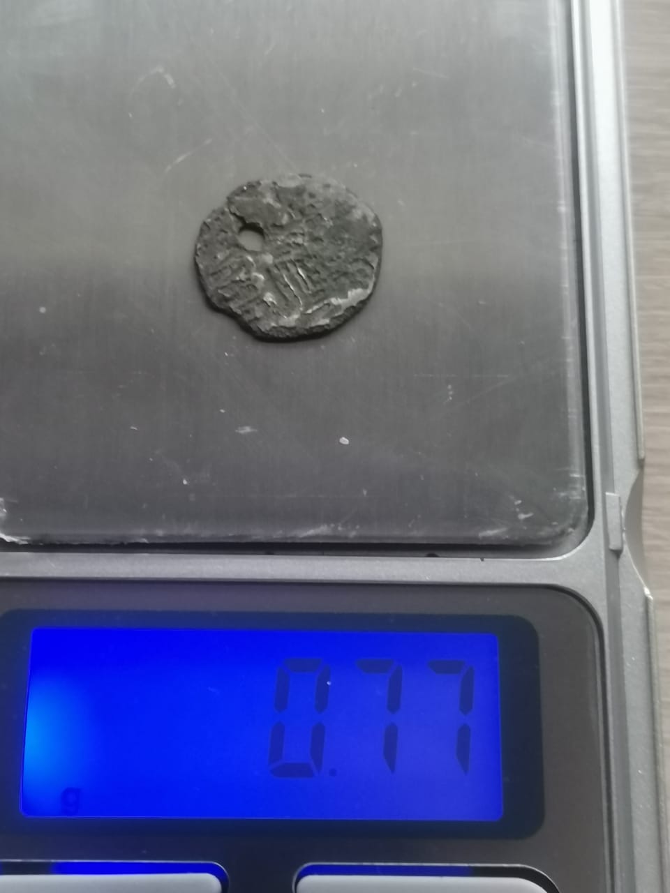 Прошу помощи в определении монеты. Вес 0,86 гр. Найдена в Татарстане. Спасибо! |