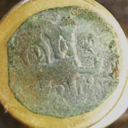 Здравствуйте, как я понимаю это четвертинка куфического дирхема? Диаметр катушки, на которой лежит монета - 13 мм, вес монеты - 0,52 гр.