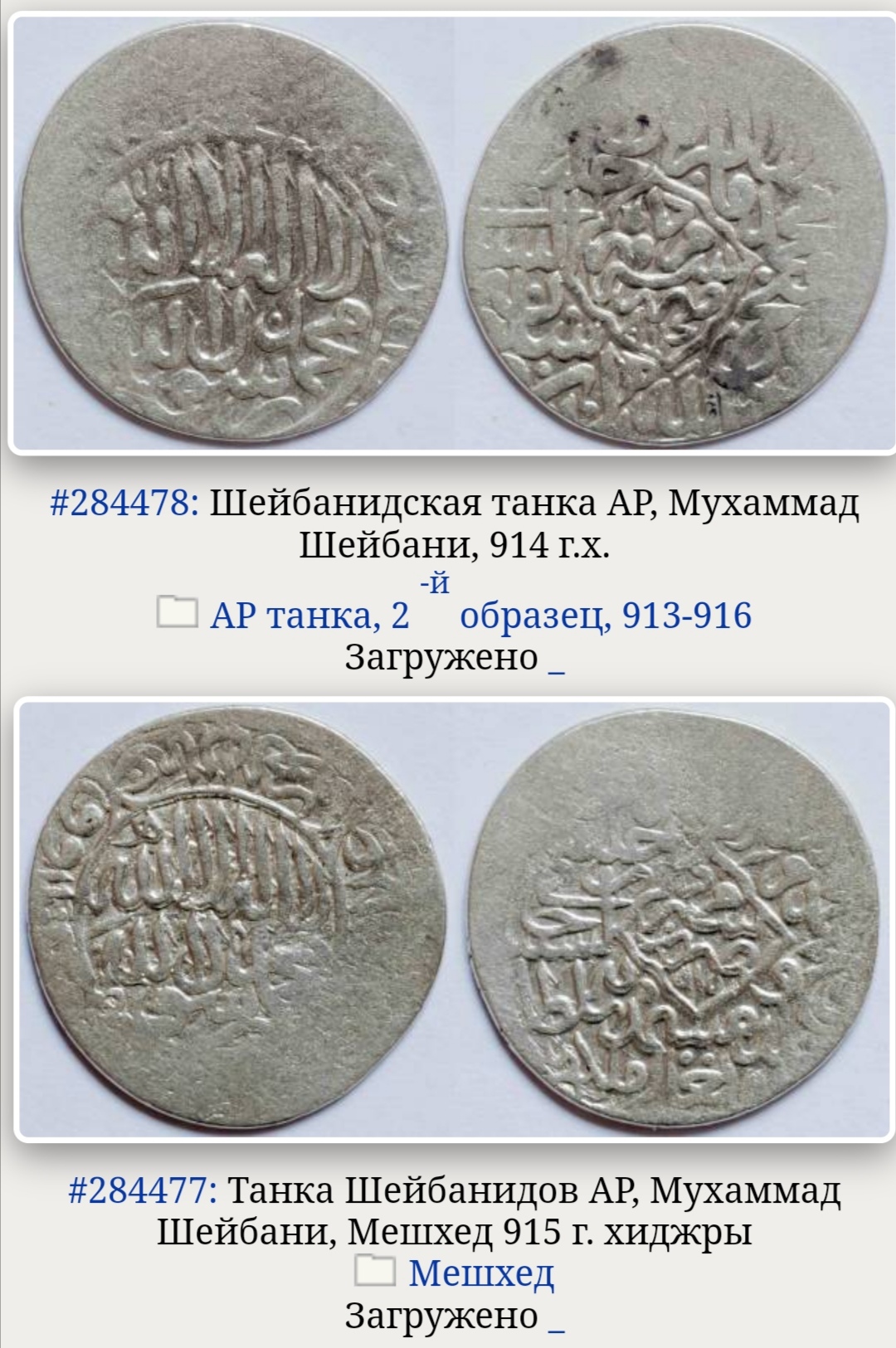 QUOTE(Разбой @ May 12 2023, 21:35) Тимуриды. Хусаин Байкара. 914гх.МД не подскажу... 2000 - 3000 просят. Сколько дают - ХЗ. Поправлюсь с помощью более опытных товарищей Теньга. Шейбаниды. Мухаммад Шейбани. Двор утрачен. 914 г.х. По ценнику, соответственно мимо. Предложения не частые, статистики нет. Сообщение отредактировано Разбой: May 13 2023, 13:41 Вложенные эскизы изображений -------------------- СаД - Сарай аль Джадид