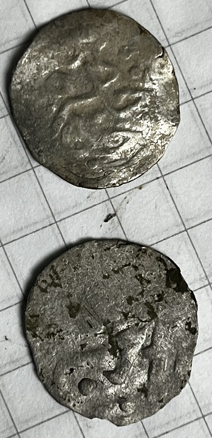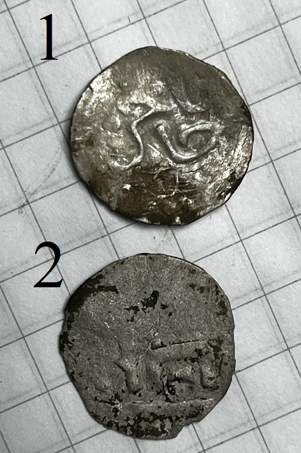 QUOTE(Nazarof @ May 13 2023, 16:05) Большое спасибо! А мне виделось, что №1 подражание... №1 Ермолов считает что подражание, там типа почерки не те и ошибки ... №2 условно можно отнести к РВО, монеты идут с Рязано-Тулки, а там черт ногу сломит ранние они или уже времен именной чеканки в НСВК и ВКМ пока не понятно. ТС, уточните топографию в ЛС. -------------------- Мракобесие есть неизбежный спутник познания ...