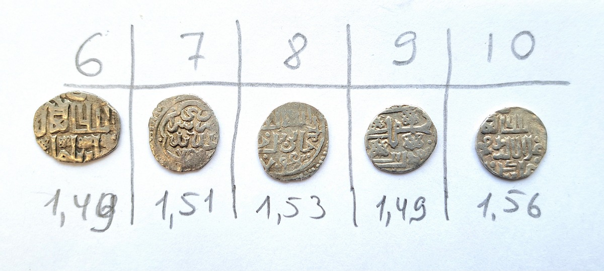 QUOTE(Trubadur @ Sep 29 2023, 10:27) Разбой, спасибо большое за помощь. Ещё немного монет. Заранее благодарен. С ув. 6 Джанибек СаД 748 гх. 7 Бердибек СаД 7...кажется 59 гх 8 Джанибек СаД с анахроничной датой 741 гх 9 Узбек Сарай тип 739-741 гх. 10 Джанибек Гюлистан 752 гх. -------------------- СаД - Сарай аль Джадид