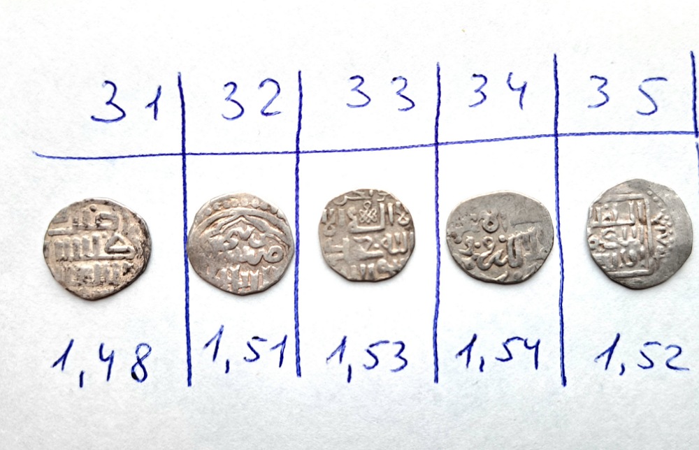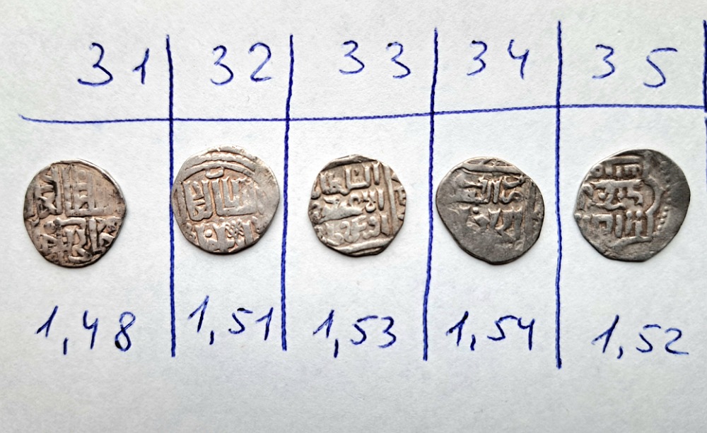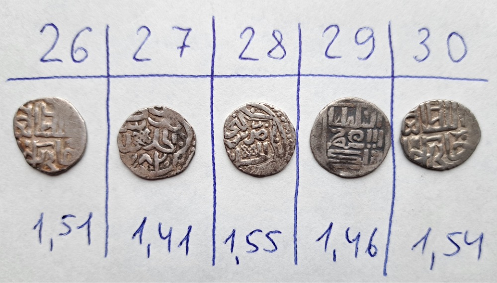 QUOTE(Trubadur @ Oct 12 2023, 07:32) Доброе утро, помогите пожалуйста определить и оценить монетки. Заранее благодарен. С уважением. 26 Джанибек Гюлистан тип 752 – 3 гх 27 Токтамыш СаД 782 гх 28 Джанибек СаД 748 гх 29 Узбек Сарай тип 714-718 гх. 30 Джанибек Гюлистан тип 752 – 3 гх Редкостей нет. 400 р +/- за шт. -------------------- СаД - Сарай аль Джадид