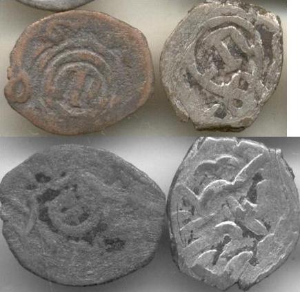 Это Крымские Гиреи. В вашем случае номинал - акче. Слева: Сахиб-Гирей 1 (сын Менгли-Гирея 1, правил в 1532-1550 гг. Чеканились на монетном дворе Кырк-Ера) Справа: Мухаммед-Гирей (сын того же Менгли 1, правил 1515-1523 гг. Чеканились на мон. дворах: Крым и Каффа). P.S. По цене на именно эти экземпляры - Сахиб "стёрт", по Мухаммеду легенды частично вошли на монетный кружок - дал только бы за Муххамеда сотку, не больше. Вот как-то так. Сообщение отредактировано Ktibq: Feb 19 2012, 15:53 -------------------- Кто в прошлое выстрелит из пистолета, в того будущее выстрелит из пушки