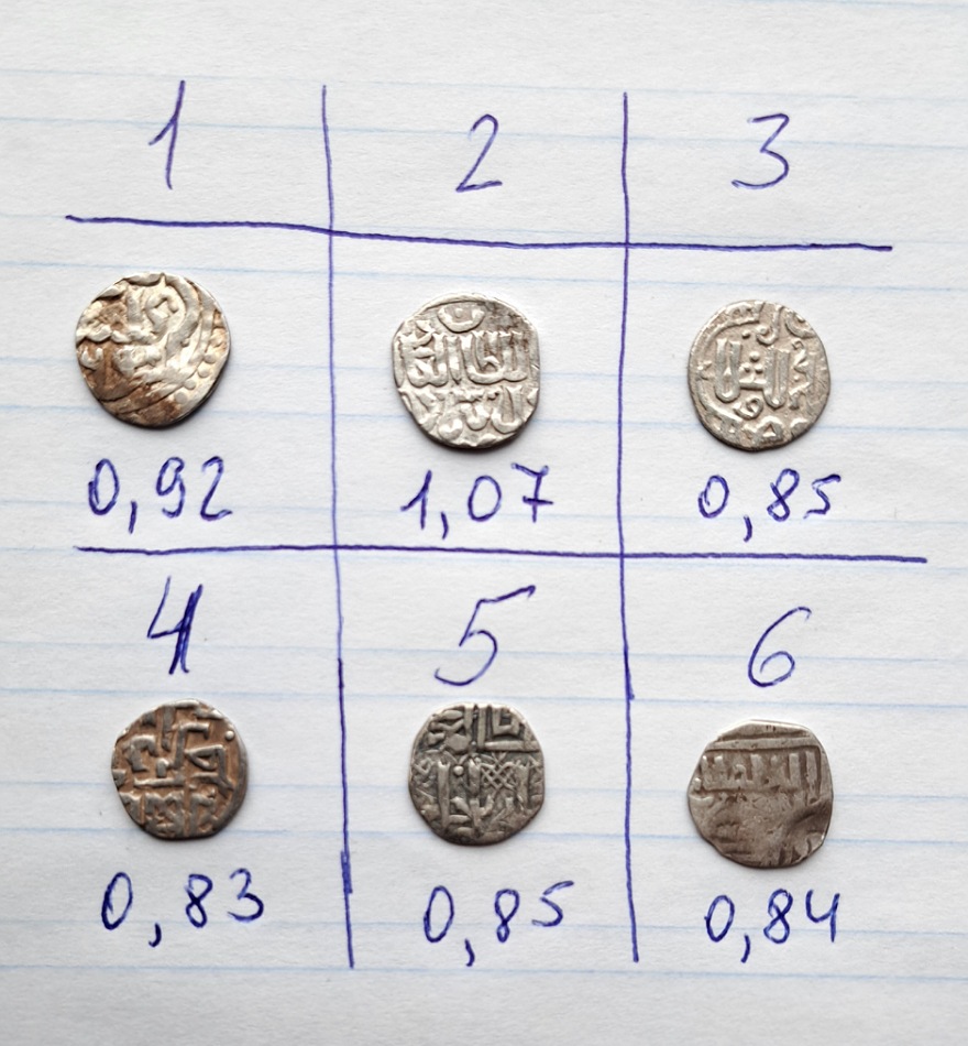 QUOTE(Trubadur @ Dec 10 2023, 15:34) Здравствуйте, прошу помощи в определении и оценке данных монеток. Заранее благодарен. С уважением. Обрезанные данги до 100р за шт.: 1. Мюрид Гюлистан 764 гх 2. Бердибек СаД 3. Мухаммад Орду “Власть Аллаху” 4. Бердибек Гюлистан 759 гх 5. Джанибек СаД 747 гх 6. Узбек Сарай -------------------- СаД - Сарай аль Джадид