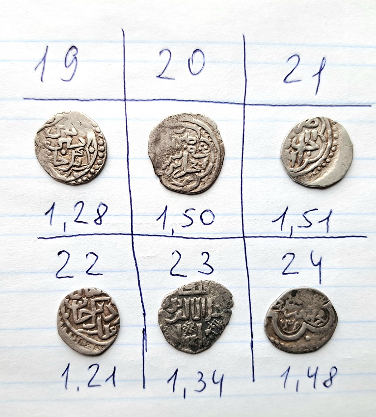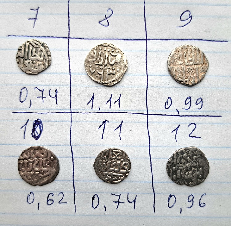 QUOTE(Trubadur @ Dec 17 2023, 11:11) Здравствуйте, помогите пожалуйста определить и оценить монетки. Заранее благодарен. С уважением. По остальным. 7. Кулпа Гюлистан 760 г.х. 8. Кильдибек Азак 763 г.х. 9. Джанибек СаД 748 г.х. 12. Джанибек СаД. все монеты подрезаны 100-200р, но №8 и в таком виде может 500-600р набрать. -------------------- Мракобесие есть неизбежный спутник познания ...