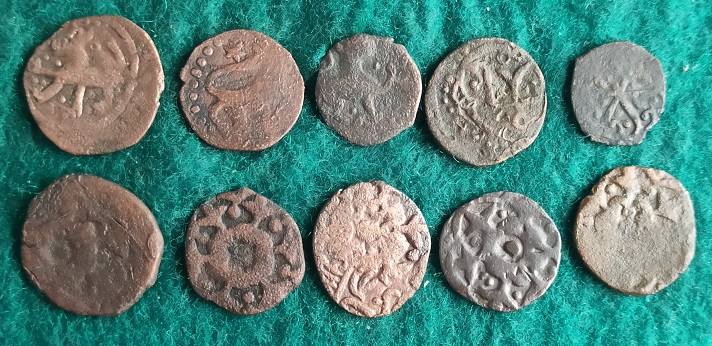Доброго дня. Помогите с определением монет. У верхних четырех вес 1,15-1,17г. Нижняя 2,10г. Ну и по оценке если можно.