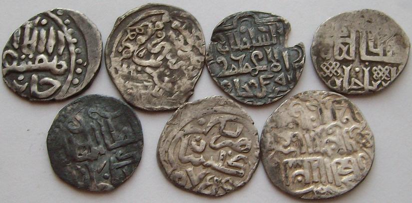 № 4. Тохтамыш. Урду ал Муаззам. 791 г.х. № 2. Ворпрос? Подражание Тохтамышу? Сарайчуку?. № 1. ? |