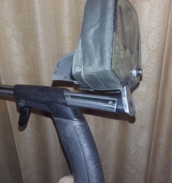 Прошлый сезон показал следующее. Крепление, блока к штанге получилось надежное. После неоднократных выездов, ничего с самодельным кронштейном не случилось. (клей герметик + стяжки) При раскладывании в определенный момент провод задевает за зажим, но если не раскладывать одной рукой на ходу и перекинуть провод в момент клина все нормально. Поскольку сам люблю переключать режимы во время поиска, то положении блока вдумчиво выбирал, от идеи разместить его на торце самой штанги отказался (опыт показал что разложить нормально прибор не получиться провод все время мешает) даже немного повернул блок по оси по ходу часовой стрелки, дабы большим пальцем легко можно было дотянуться до кнопок управления. Сейчас прибор ждет следующего сезона если кому нужны фотографии в лучшем качестве, то имею возможность сделать и прислать.