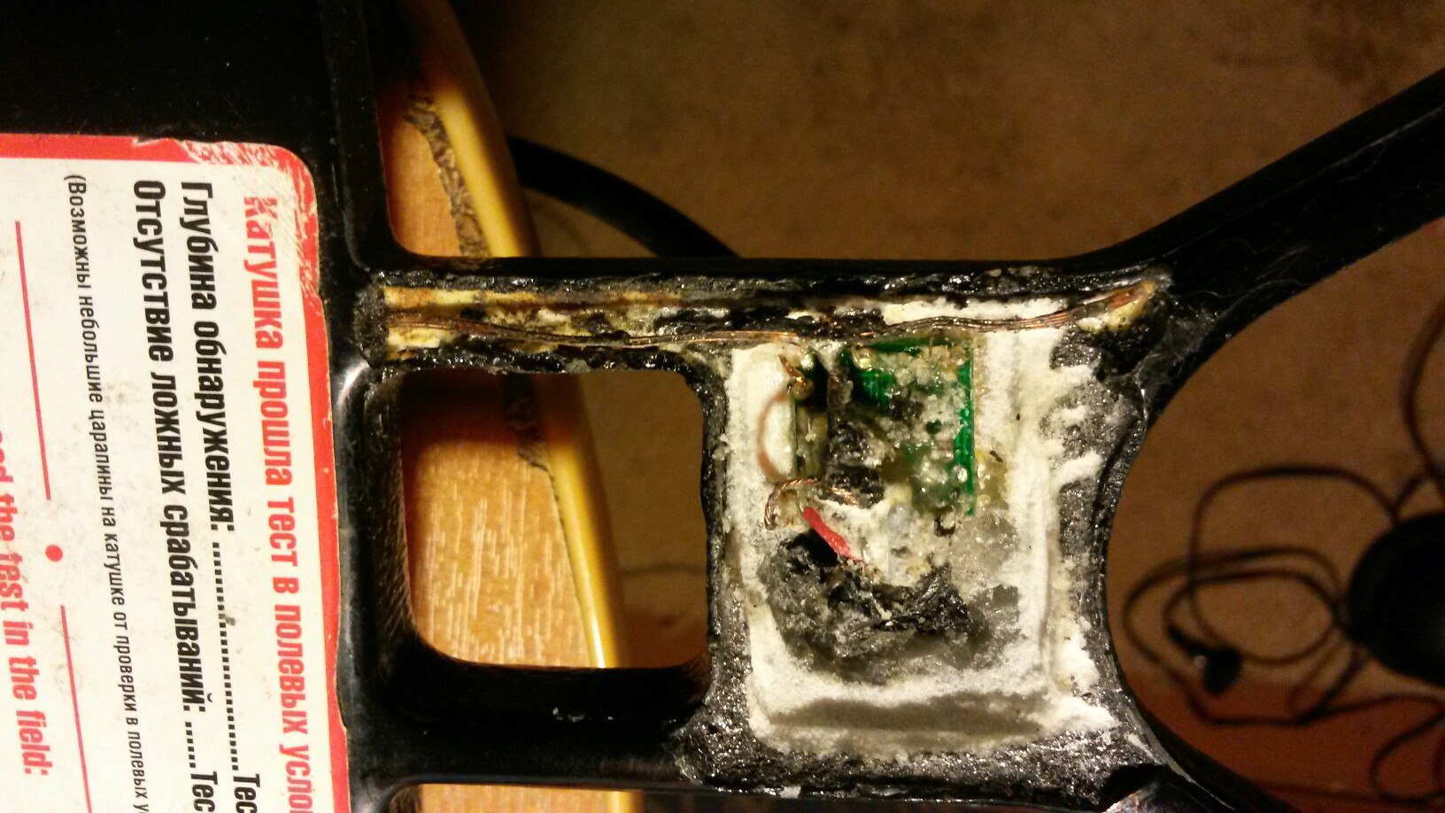 Попала в руки вот такая катуха- был боковой удар, корпус лопнул. Вместе с ним лопнул и весь пучок провода. Катуха на выброс, поэтому решил попробовать просто соединить концы обрывов в надежде, что баланс сильно не уползёт никуда. Первое фото - видимая трещина от удара, обозначена маркером. Второе фото - обозначенное место предстоящего вскрытия. Сообщение отредактировано Квирит: Mar 19 2016, 20:30 Вложенные эскизы изображений |