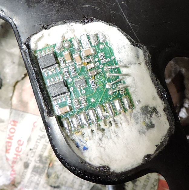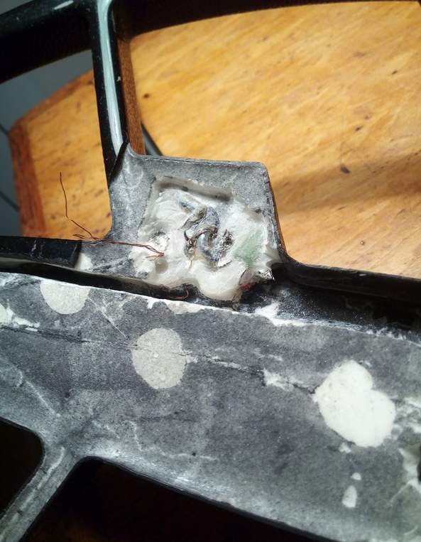 Катушка для GARRETT AT Pro. Корпус поломался, заливка потрескалась и отвалилась. Пришлось снять.