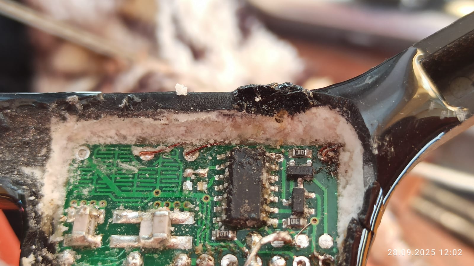 На фото конечный результат. На кусочке платы контроллер, три дорожки, которыми он подключен, на обрезке остались не тронуты. Контроллер с платы выпаян. Никаких лишних нагрузок по питанию нет.