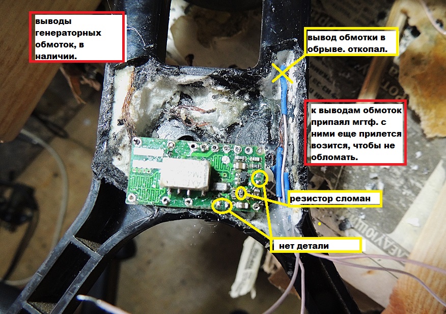 У меня проблемы такие: 1. Стандартная ДД катушка 7.5 кГц вроде на тёрку 705 - развалился кабель - требуется замена - цена как в постах выше - 3000? 2. Катушка Нел Торнадо - тоже оборвался родной кабель (жила №4). Я в принципе с паяльником дружу, катушку расковырял, жилы прозвонил, поврежденную вычислил, более-менне аккуратно жилы выпаял, зарисовав предварительно распиновку на бумажке. На этом мне б и остановиться по-хорошему - ведь знаю я что не хватает у меня на подобные работы терпения, но нет блин, дёрнул чорт вынуть плату полностью, "чтобы удобнее было жилы припаивать. Ну отпаял я аккуратно жилы катушек, сфоткал - вроде понятно что откуда и куда. Начал вычищать плату - поторопился, выдернул и увидел что все-таки оборвал 2 жилы в месте, обведенном красным на одной из фотографий. А куда из них акая должна идти - тут я хз, мои полномочия всё Ну, то есть, для второй катушки необходимо восстановить (верхние) и правильно припаять все жилы обмоток, установить плату на место и припаять к ней родной кабель (участок с повреждением я отрезал, прозвонил - все жилы целые. Фото прикладываю. Возьмётесь за торнадо? И сколько такая работа выйдет по цене? Я с Волгограда, могу привезти и забрать катушку(-ки) лично. |