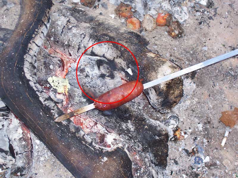 Razdolbaj!!!!Глянь еще раз на фотку,где у тебя одна эта....колбаска-сосиска-шпикачка жарится!!!!Там на угольке прям над ней как будто бы портрет мальчика в шапке